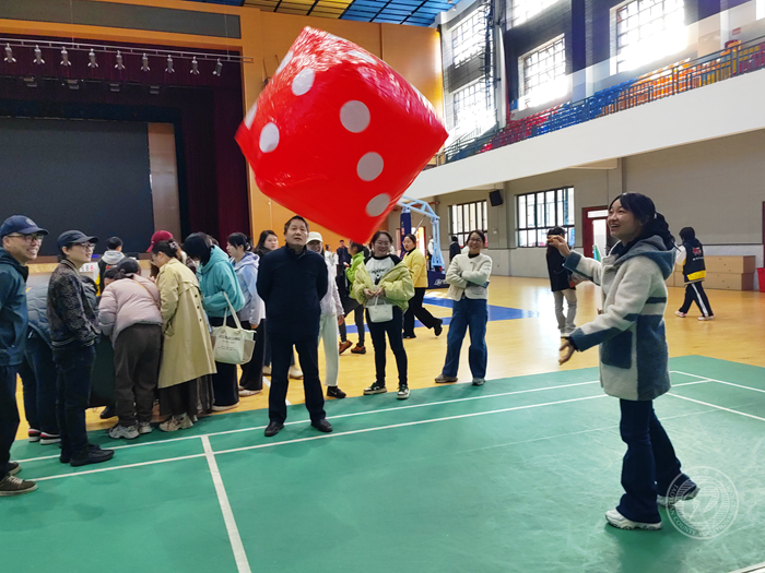 当天下午,全校四百多名教职工早早来到体艺馆,顿时间欢声笑语不断。立定跳远区,平日里手握粉笔的教师们化身“飞人”,助跑、起跳一气呵成;定点投篮处,数学老师精准计算抛物线,语文教师展现优雅投姿;单人跳绳赛场上,青年教师脚尖轻点如行云流水,资深教师稳扎稳打频创佳绩。“骰子乐园”更是充满了悬念与欢笑,妙趣横生。整个赛场既充满了竞争的紧张感,又洋溢着轻松愉快的氛围,充分展现了教职工课堂之外的活力与风采。